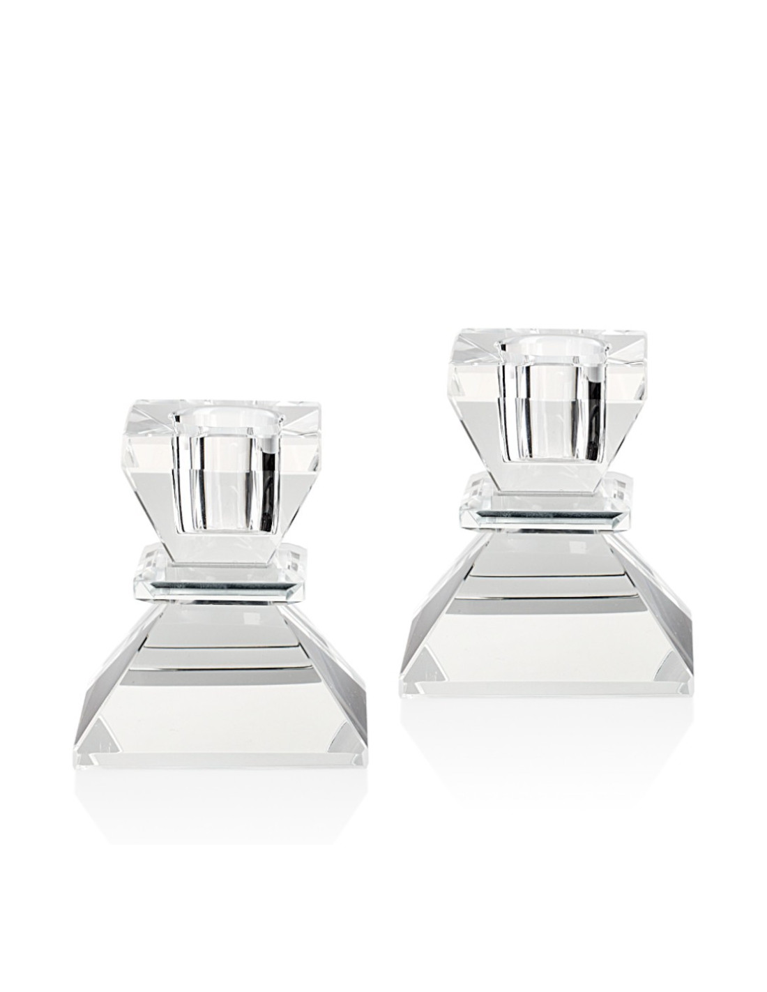 Coppia di candelieri in cristallo dai riflessi di luce bianca